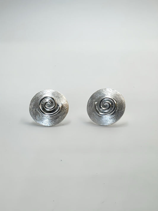 925 Sterling Silver Spiral Stud Earrings | Round Flat Studs