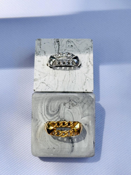 Adjustable Chain Link Ring | Sterling Silver, 22k Gold Plated