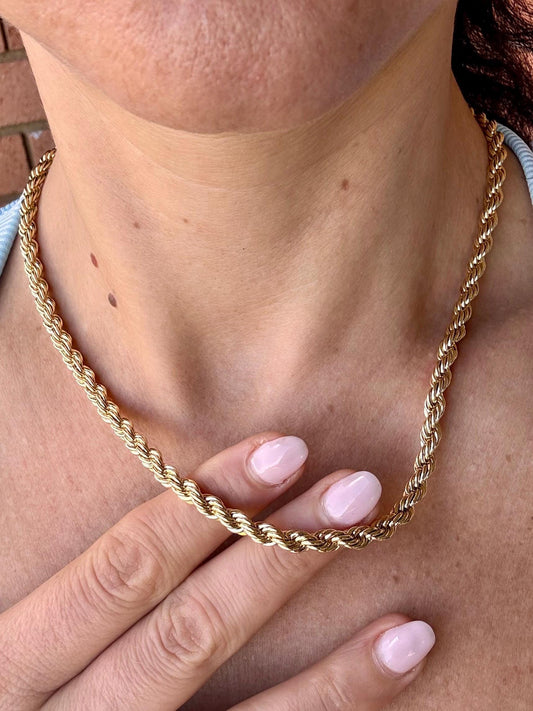 14K Gold Plated Rope Chain Necklace + Bracelet Set | Stainless Steel