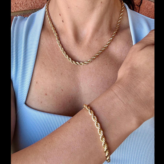 14K Gold Plated Rope Chain Necklace + Bracelet Set | Stainless Steel