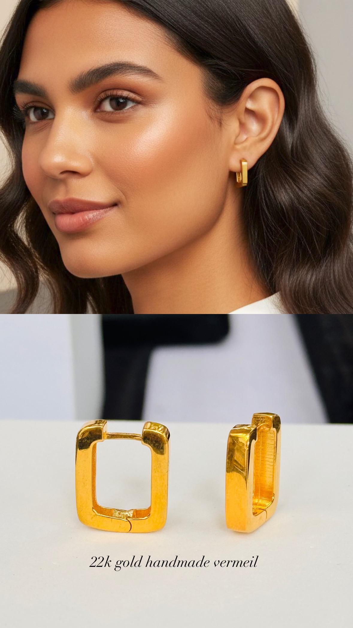 22K Gold Vermeil Square Huggie Earrings | 925 Sterling Silver